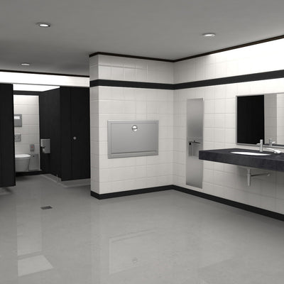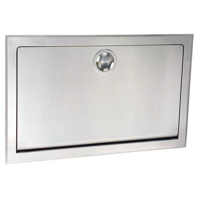 The Koala Kare KB110-SSRE baby changing station has a high-density polyethylene interior that resists odors and facilitates cleanup. Microban® antimicrobial agent is built into the interior to resist bacteria. With the stainless steel exterior finish, the unit has a clean look and provides strength for heavy use. Additional durability is provided by the reinforced, steel hinges. As users open and close the table, the spring mechanism helps prevent it from slamming. Bag hooks and a liner dispenser are integrated into the Koala Kare KB110-SSRE baby changing station for convenience. It mounts horizontally in a recessed position to save space.