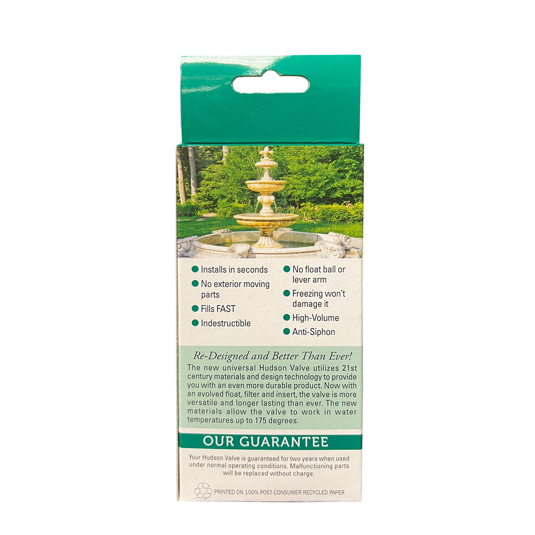 The Hudson Valve is designed to maintain a constant level of water. Once attached to your water source, it will turn the water on and off as needed. This valve will take the place of daily hand watering and monitoring. Hook it up and never worry about running low on water again!