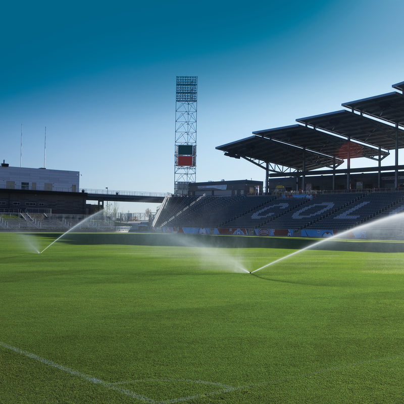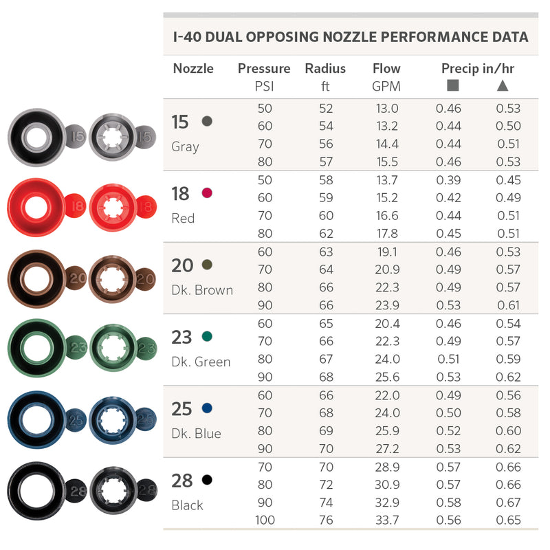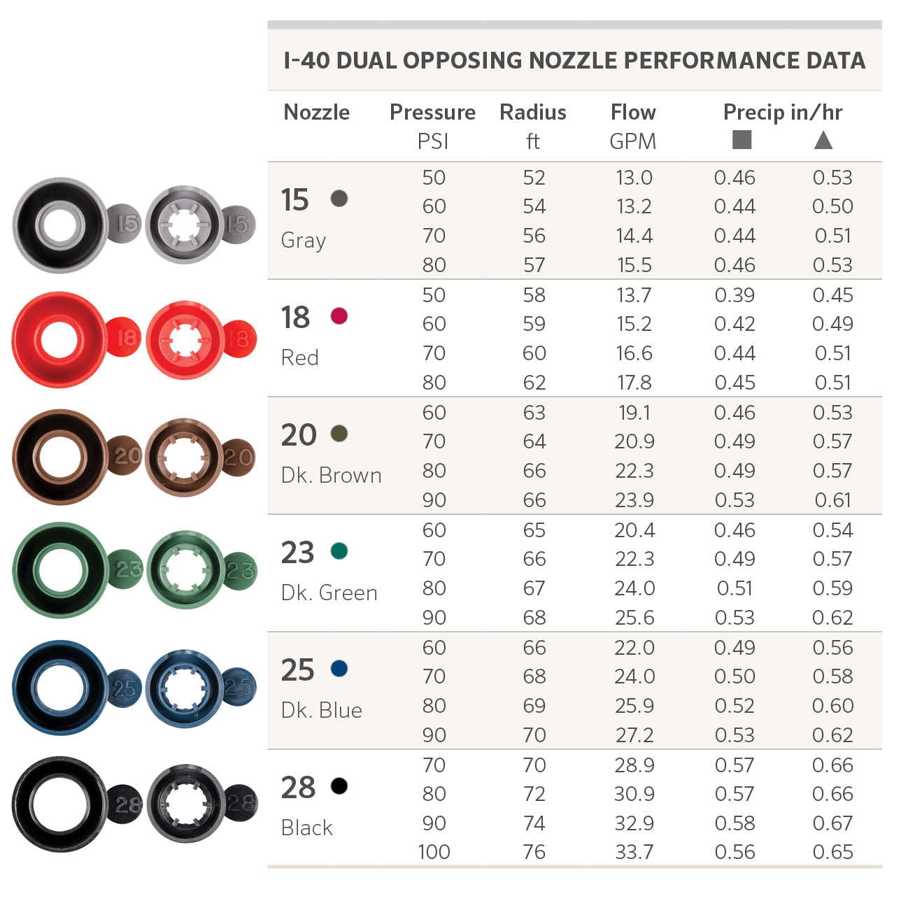 The I-40 is a tough commercial rotor that delivers water with accuracy and efficiency at distances up to 70 feet. Featuring diverse three-port nozzle options, a non-strippable drive, and a thick rubber cover built to prevent injury; it's no wonder this rotor is found in more stadiums than any other in the world. With the strength of stainless steel, the I-40 is built to last in the harshest sports, public park, and commercial environments. If efficiency, effective irrigation, and beautiful results are the goal, the I-40 is the irrigation professional's best solution.