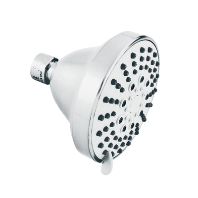 - 4" diameter 6 function showerhead with pause control to conserve water