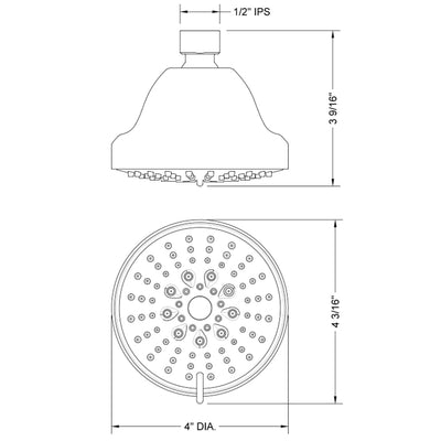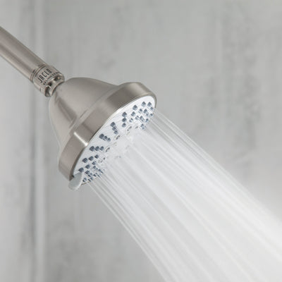 - 4" diameter 6 function showerhead with pause control to conserve water