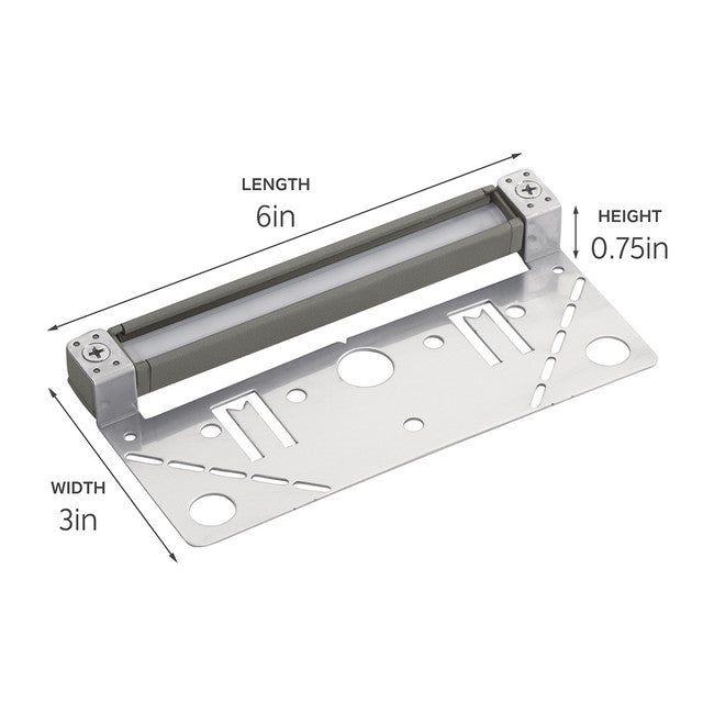 The 12V LED Hardscape light is an integrated, fully sealed LED fixture with a 270 degree pivot rotation from a mounting bracket which allows you to place the light precisely where it's needed. The 3" length option fits most design applications with a 3000K color temperature in a Architectural Bronze (AZT) finish. Custom optics ensure smooth, uniform light distribution virtually eliminating any hotspots or glare. Integrated with a 4kV surge protection to defend against power surges and irregularities.