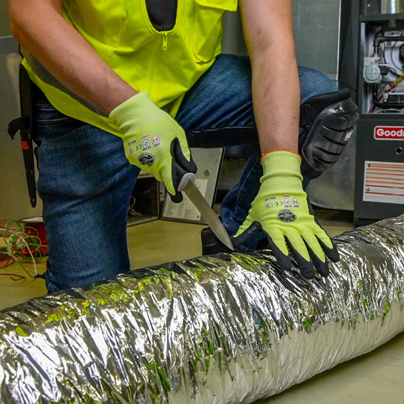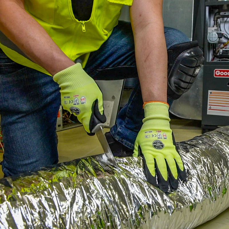 Klein Tools Serrated Duct Knife is perfect for cutting duct board and flexible duct. The stainless steel blade is dual-sided: 1-serrated and 1-regular for