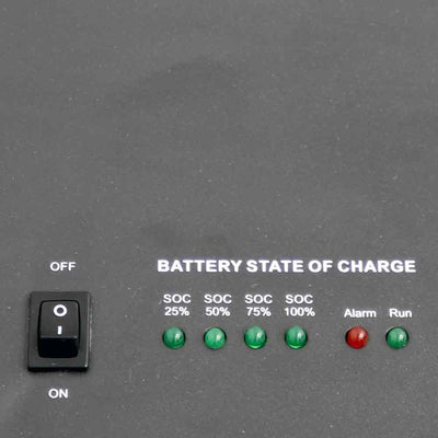 - Battery status LED located on the front of the battery displays SOC percentage RS485 & CAN ports