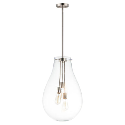 The crystal clear, large-scale glass pendants attest to the craft of hand-blown glass with their impressive scale. These hand crafted glass pendants embody simplicity and minimalism. Accented with Satin Nickel hardware, the style pairs well in a variety of settings.
