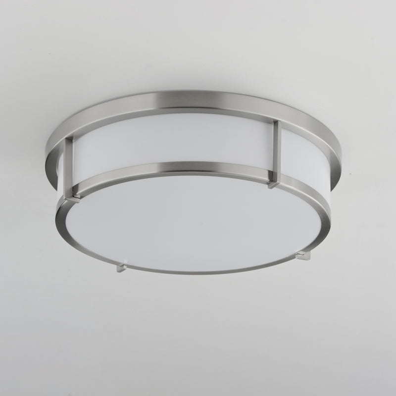 A steel framed acrylic shade transitional flush mount available in a variety of finishes and sizes. Featuring easy accessibility to the shade after installation, the locking mechanism that shade's frame rests on top of making removal quick for keeping clean and replacing lamps over its lifetime. For those who prefer not to re-lamp, an LED option enhances the fixture by evenly dispersing the light across the shade, and it includes additional options made for light commercial applications. This includes an emergency backup battery and range voltage inputs. Available in your choice of Satin Nickel, Satin Brass, and Black and two shade sizes.