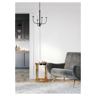 Arms sweep upward from an adjustable collector to create a minimal yet stately design. Available in Black, Satin Brass, and Satin Nickel, this collection provides a transitional look for a variety of settings.