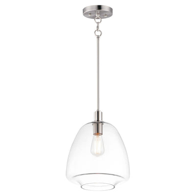 Pendants of Clear glass in unique elongated and undulating shapes with various sizes. This series pairs well with popular finishes in hardware and plumbing, giving you the flexibility to take chances with designer statement pieces. The metalwork is available in your choice of Matte Black, Satin Brass, or Satin Nickel. A coordinating wall sconce pairs well with the collection. Use filament bulbs to complete the look.