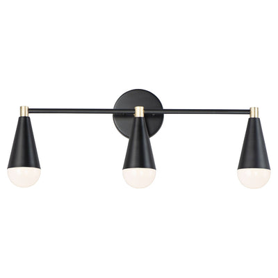 A classic mid-century look, the Lovell collection features two sizes of sputnik chandeliers and streamlined sconces perfect for bath vanity applications. Available in a Black/Satin Brass finish combination. Light bulbs nest inside the metal cones to become an element of the design.