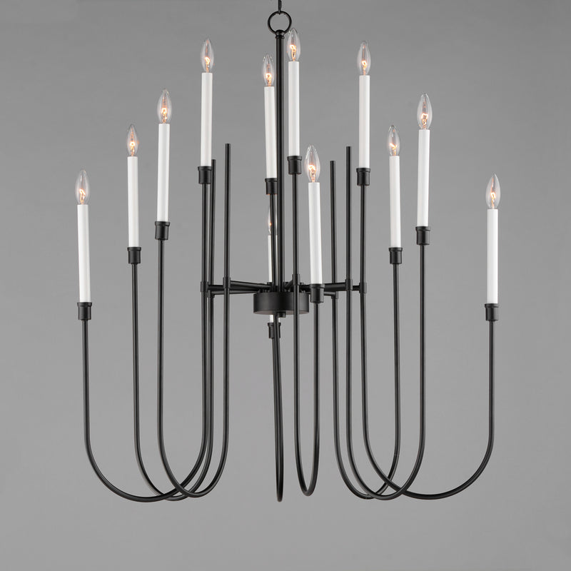 Updating the traditional chandelier form, the Tux collection uses elongated sweeping lines evocative of the mid-20th century and stripped down ornamentation to create a transitional lighting product relevant again. The two-tone Black and White powder coated finish offers a neutral color palette, which coordinates perfectly with a variety of settings. Use decorative tubular bulbs or globes to dress up the design, or keep it classic with candelabra lamps.