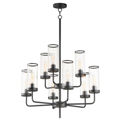 Simple, yet stylish, this minimal chandelier comes in your choice of Satin Brass or Matte Black bringing contemporary appeal. Clear Ribbed glass shades are fitted with rings in a coordinating color to complete the look.