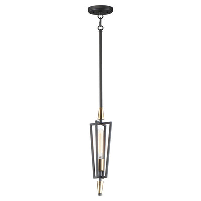 Sharp lines radiate from a pointed pin central body creating geometric angled wings that are sandwiched between matching conical fonts. Finished in a combination Antique Brass and Black, this collection is both contemporary and warm. Complete this look with vintage T10 light bulbs to for the full effect.