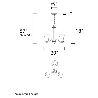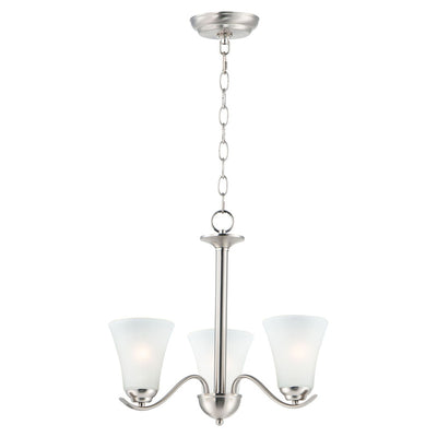 Gently waving arms of Satin Nickel or Oil Rubbed Bronze support tall-profile Frosted glass shades creating a scale normally not found in this category of lighting. The bath vanity may be installed up or down and also includes a Polished Chrome finish.