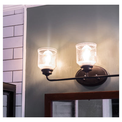 A clean and simple frame features arms that gently bend to support a Clear Seedy glass in a traditional bell shape. An easy choice for a transitional look, available in matte Black or Satin Nickel.