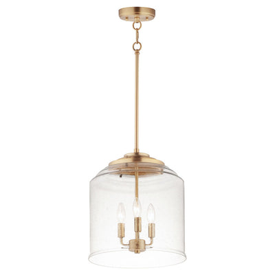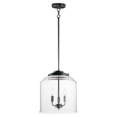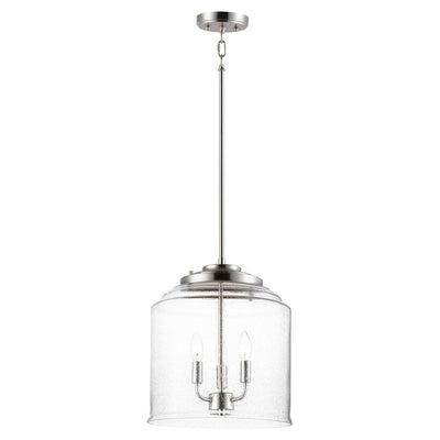 A clean and simple frame features arms that gently bend to support a Clear Seedy glass in a traditional bell shape. An easy choice for a transitional look, available in matte Black or Satin Nickel.