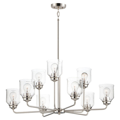 A clean and simple frame features arms that gently bend to support a Clear Seedy glass in a traditional bell shape. An easy choice for a transitional look, available in matte Black or Satin Nickel.