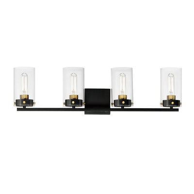 12404CLBKSBR - 4 Light Pinn 30" Vanity Light - Black / Satin Brass