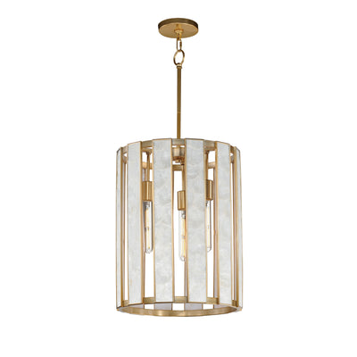 12802CZNAB - 3 Light Miramar 15" Pendant - Capiz / Natural Aged Brass