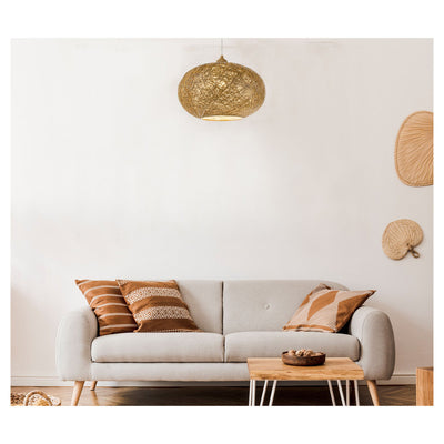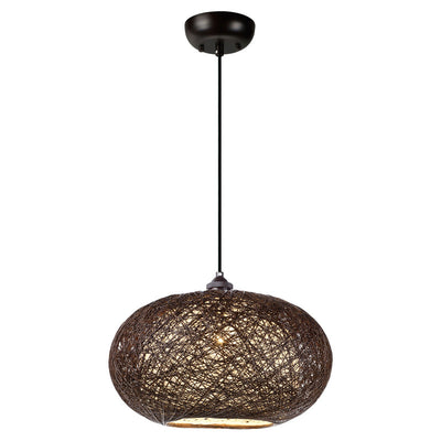 Spherical dual shades constructed of woven string in two tone finish combinations, Natural with White inner and Chocolate with White inner. Shades are treated for weather resistance and are U.L. approved for damp location which make them perfect for outdoor living spaces.