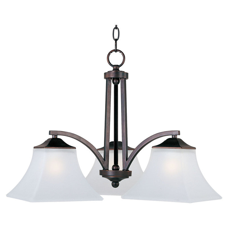 Straight lines and curves make this contemporary series a classic. Square metal tubing finished in your choice of Oil Rubbed Bronze or Satin Nickel support tapered square Frosted glass shades.