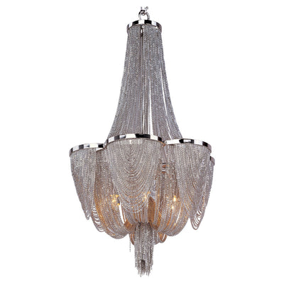 Chantilly collection features metal frames gracefully draped with Nickel finished jewelry chain. Metal trim rings of Polished Nickel add sharp contrast to the softness of the chain, which conceals the xenon light source.