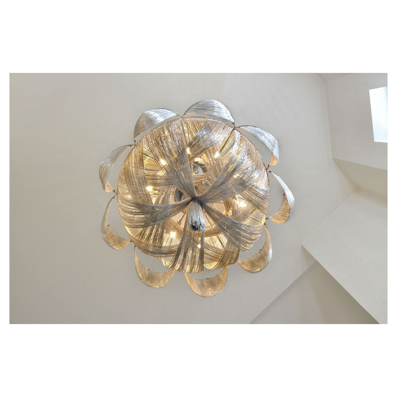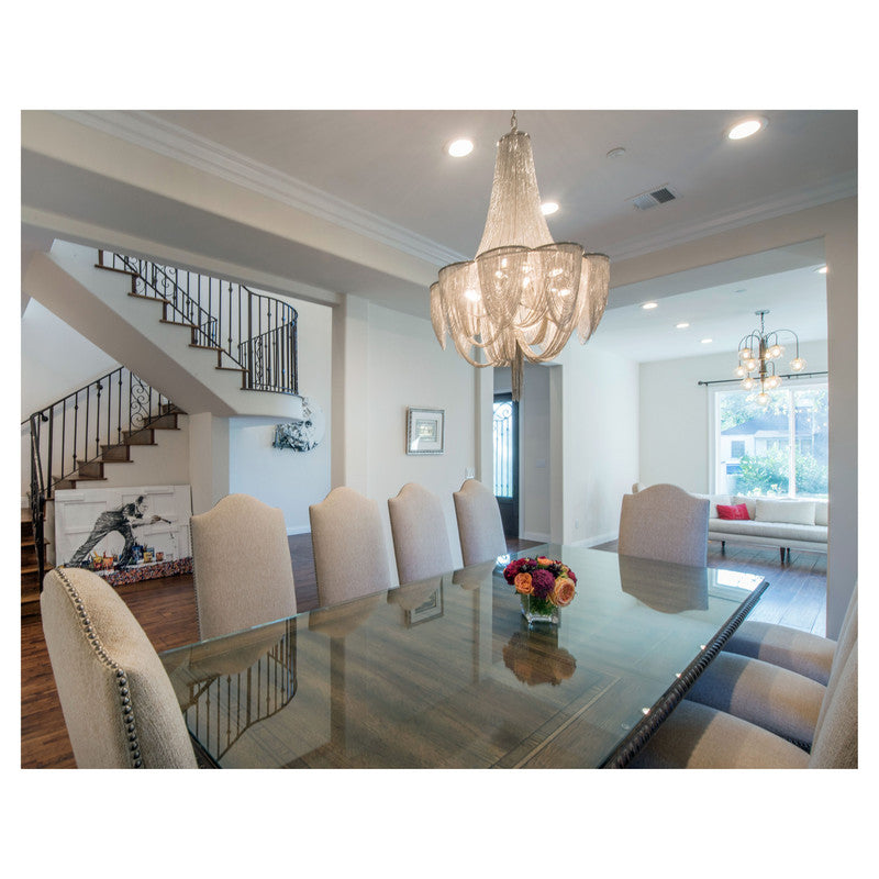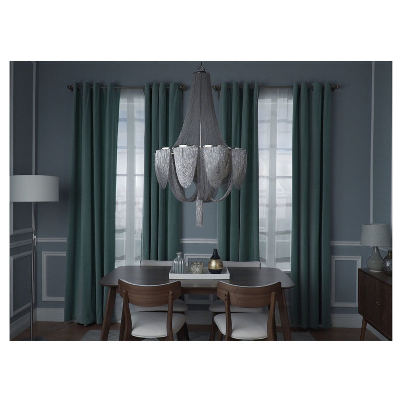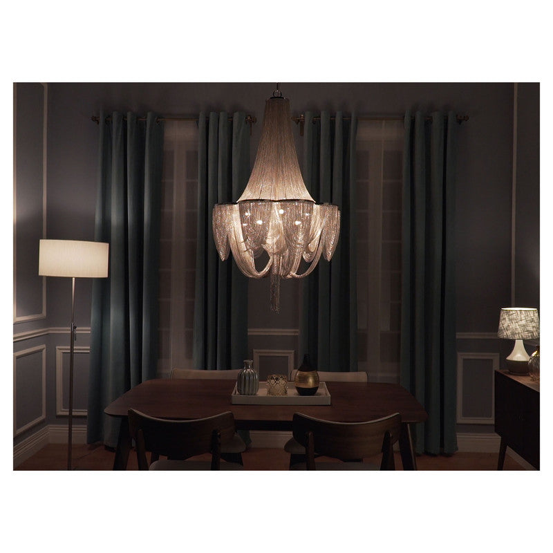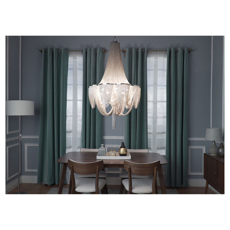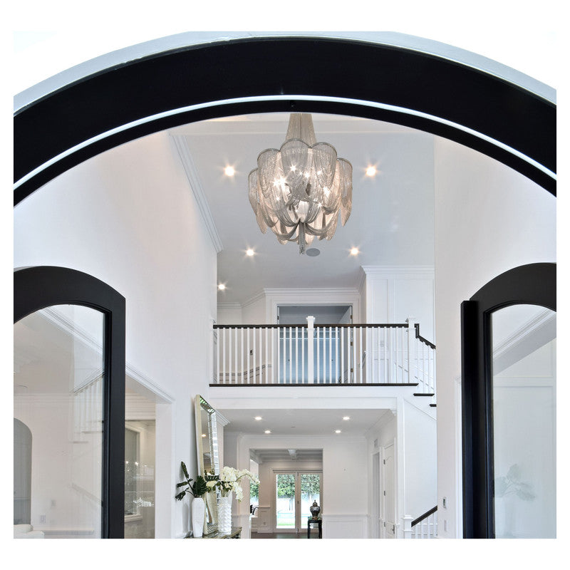 Chantilly collection features metal frames gracefully draped with Nickel finished jewelry chain. Metal trim rings of Polished Nickel add sharp contrast to the softness of the chain, which conceals the xenon light source.