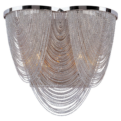 Chantilly collection features metal frames gracefully draped with Nickel finished jewelry chain. Metal trim rings of Polished Nickel add sharp contrast to the softness of the chain, which conceals the xenon light source.