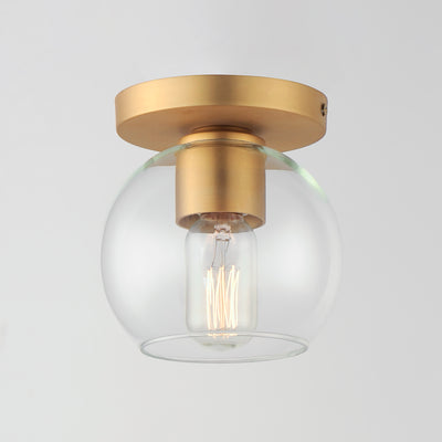 Clear glass globes on a Natural Aged Brass frame create a transitional design that is sure to please. The sloping arms level out to create a simple Mid Century Modern configuration. A full range of the products in this collection include chandeliers, pendants, flush mounts, and sconces.