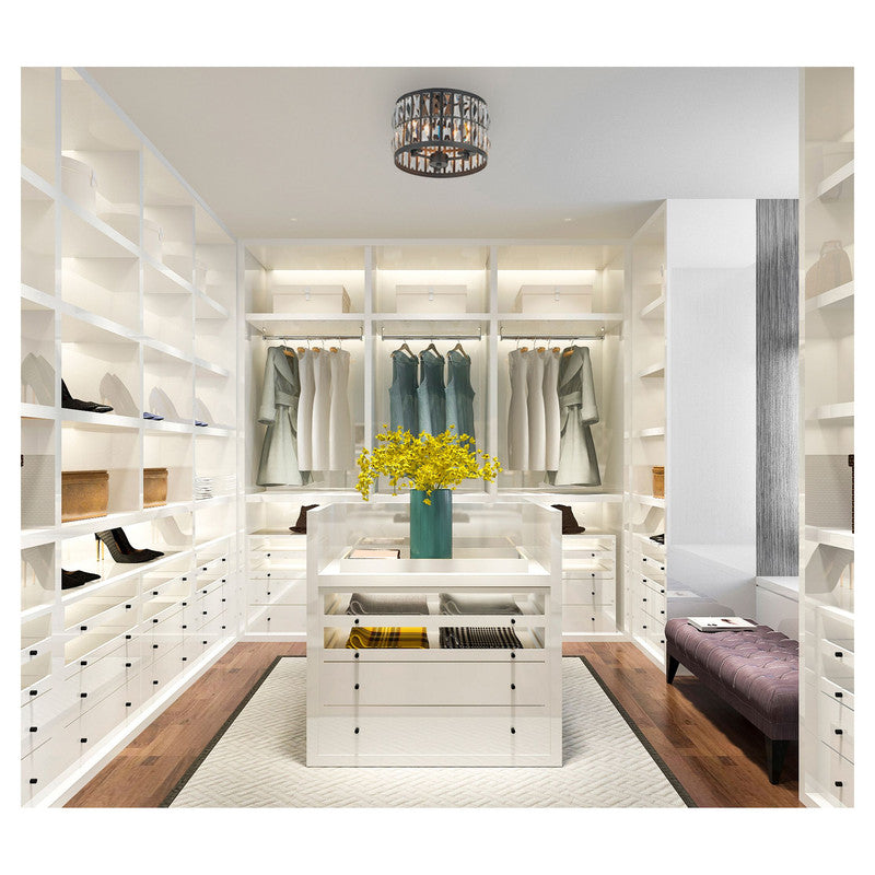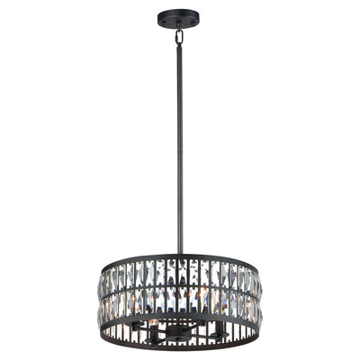 Rectilinear Beveled Crystals bejewel a Matte Black frame creates stark contrast to this radiantly prismatic display of light. The bound crystal is fixed to the frame to reduce time spent dressing the fixture.