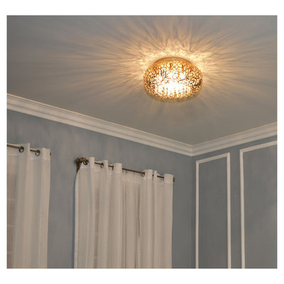 The Arabesque collection's intricate patterns are formed in metal and finished in Golden Silver. Strands of crystal beads add sparkle as they shimmer through the Xenon lamps. Unique oval-shaped pendants add a touch of class to any room.