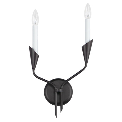 An arrangement that features Black tubing bouqueted at a point with biotic bobeches that contain elongated white candle covers. The organic form of this collection brings visual interest to the collector that is constructed of irregular stem lengths. The tailored composition of the look with its formal black and white finishes is elevated by its reference to nature. Added designer detail perfectly suited for any interior space. An accompanying ADA compliant wall sconce presents a unique option for corridor applications.
