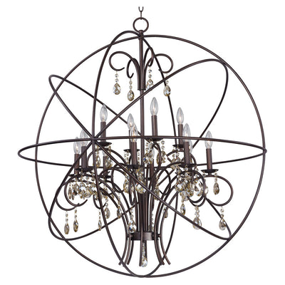A spherical frame of metal surround a simple line chandelier draped in crystal for a transitional style that fits any interior design. Orbit is available in 2 sizes and 2 finishes, Oil Rubbed Bronze with Cognac crystal and a combo finish of Anthracite and Polished Nickel with Clear crystal.