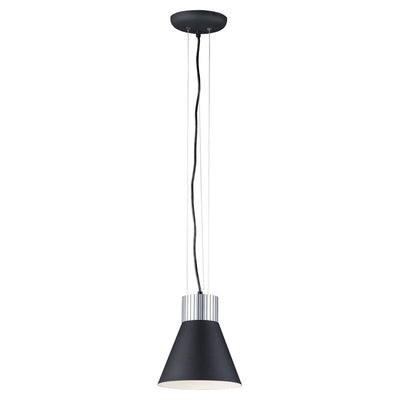 A refined industrial collection of metal pendants finished in Black and topped with Satin Aluminum heat sinks. Suspended by triple cables adds to the authentic look with high power 12 Watt LED providing ample light directed to the surface below.
