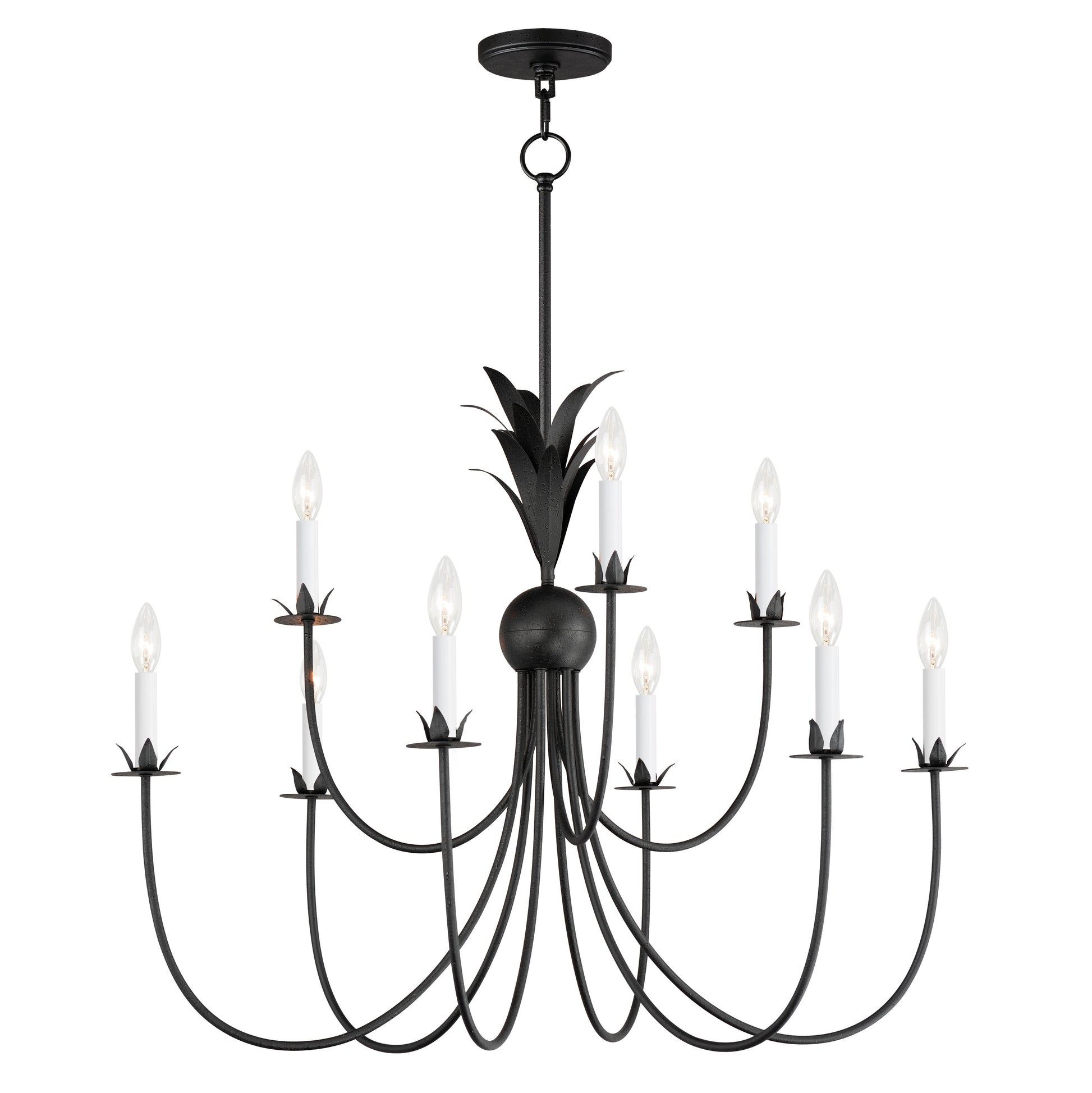 Effortlessly elegant, the biophilic details that adorn this classic chandelier transports you to an oasis indoors. The design, whether brilliantly gilt in Gold Leaf or hand painted in a dramatically textural Anthracite finish, exudes a timeless quality that is sure to please. The graceful form of these fixtures is constructed of slender metal tubes that sprout from a spherical collector at the center and Off-White metal candle covers that are designed to last.