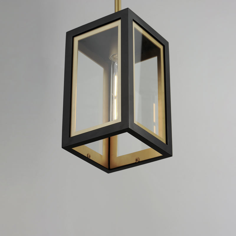 Two-tone frames of Black or White with internal Gold frames provides a neoclassical approach to the squared coach lantern. The sconces jut out from the wall on well-defined trusses that add a contemporary element. Delivering a classic design that suits most exteriors, this collection adds interest in the interior contrasting frame of Gold that secures clear glass panes to diffuse the lamp within.