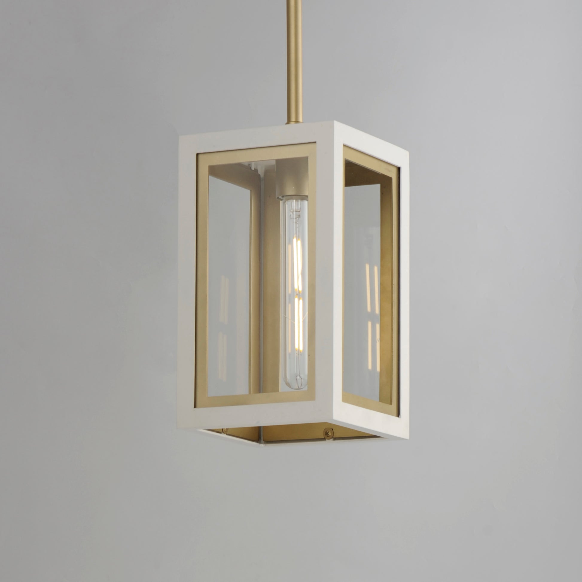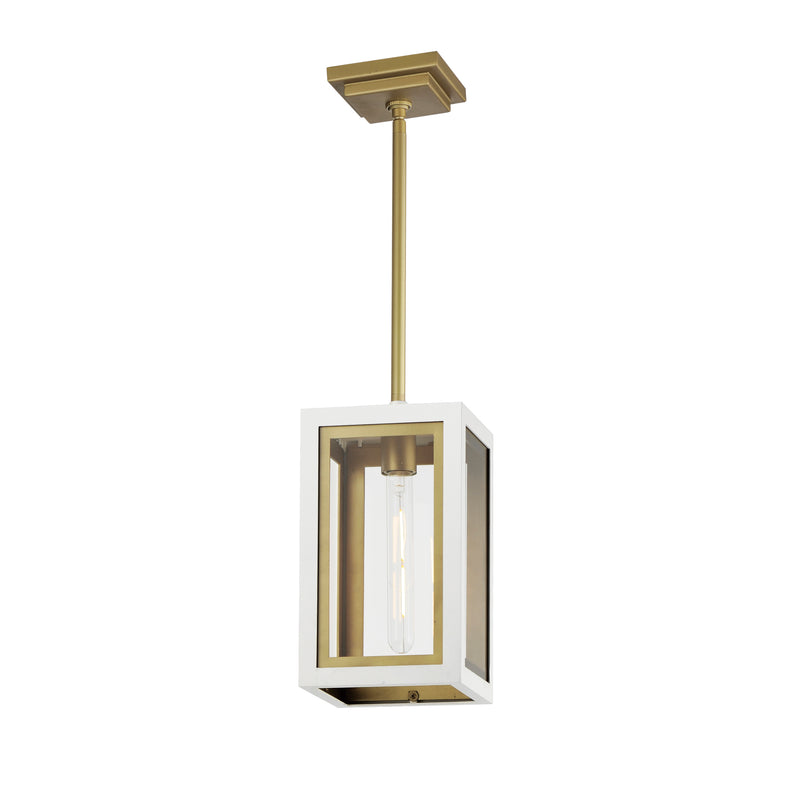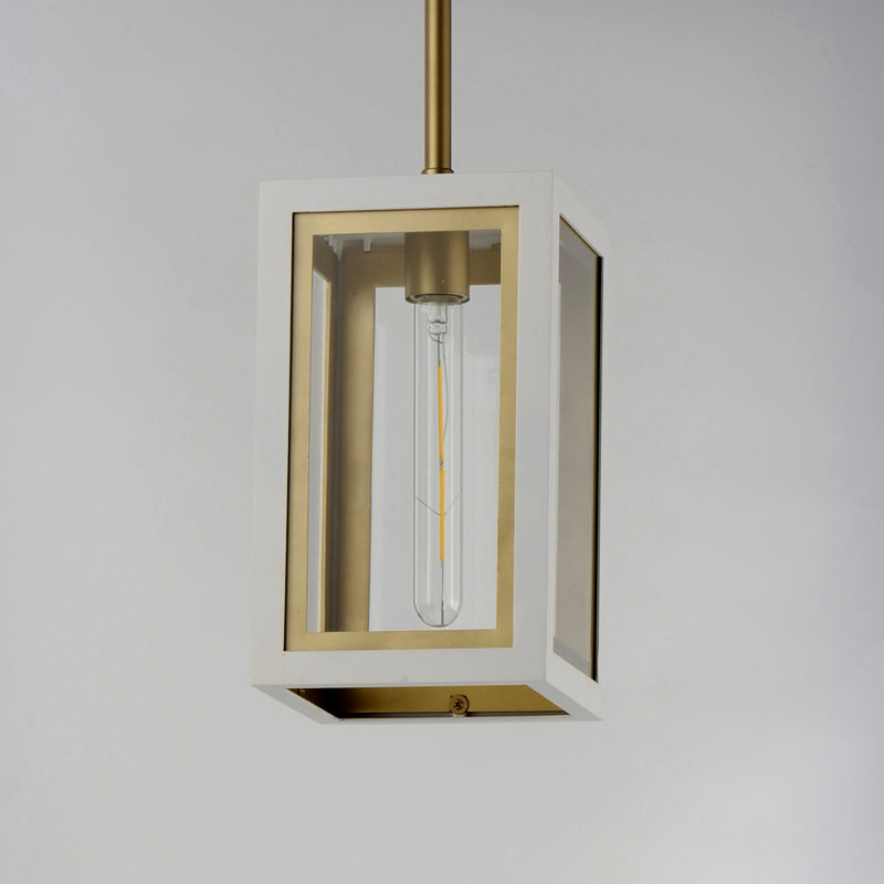Two-tone frames of Black or White with internal Gold frames provides a neoclassical approach to the squared coach lantern. The sconces jut out from the wall on well-defined trusses that add a contemporary element. Delivering a classic design that suits most exteriors, this collection adds interest in the interior contrasting frame of Gold that secures clear glass panes to diffuse the lamp within.