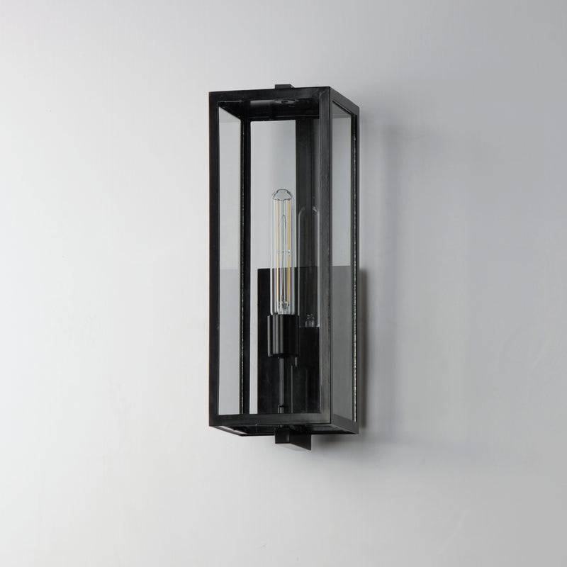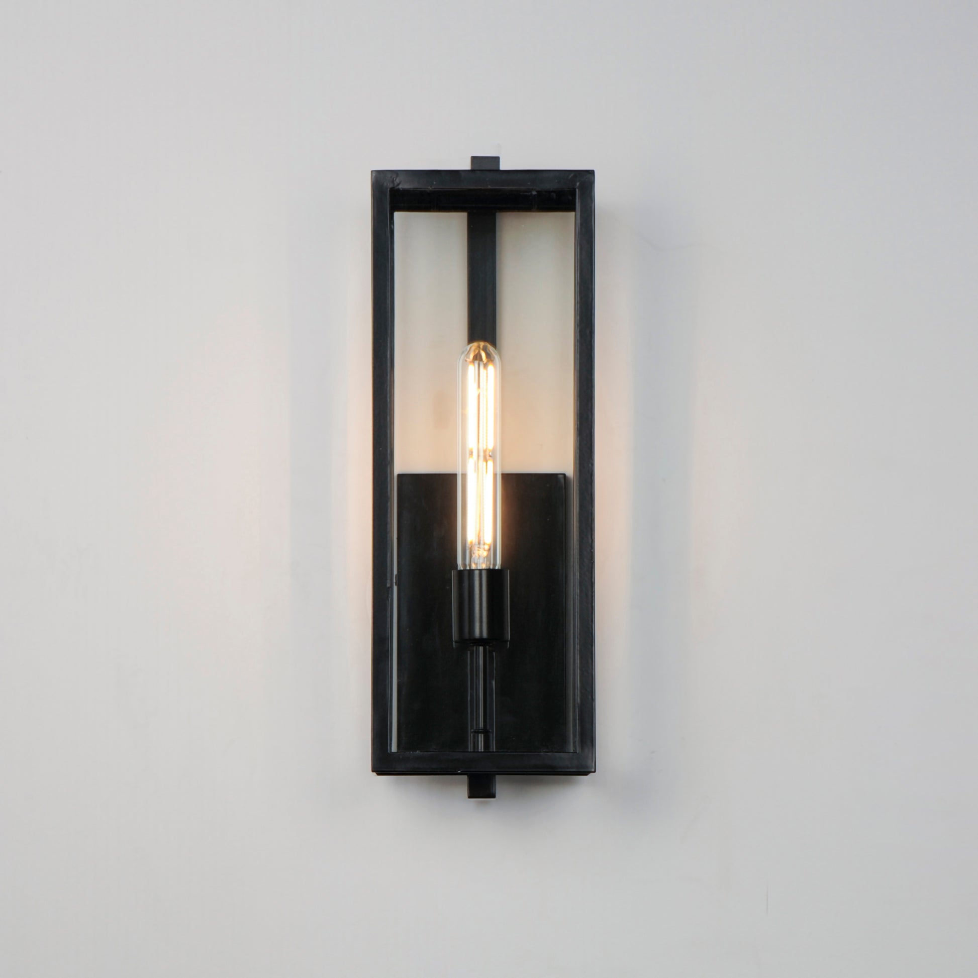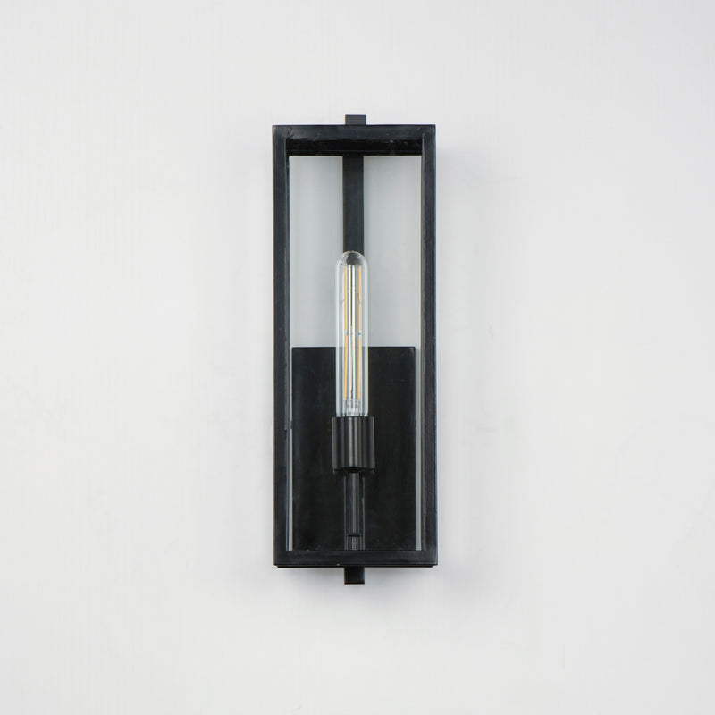 An elongated rectangular shaped design that is both minimalist and industrial. Die cast frames of Dark Bronze support Clear glass panels that provide an unobstructed view of the lantern's interior. Customize with your choice of lamps from vintage to tubular.