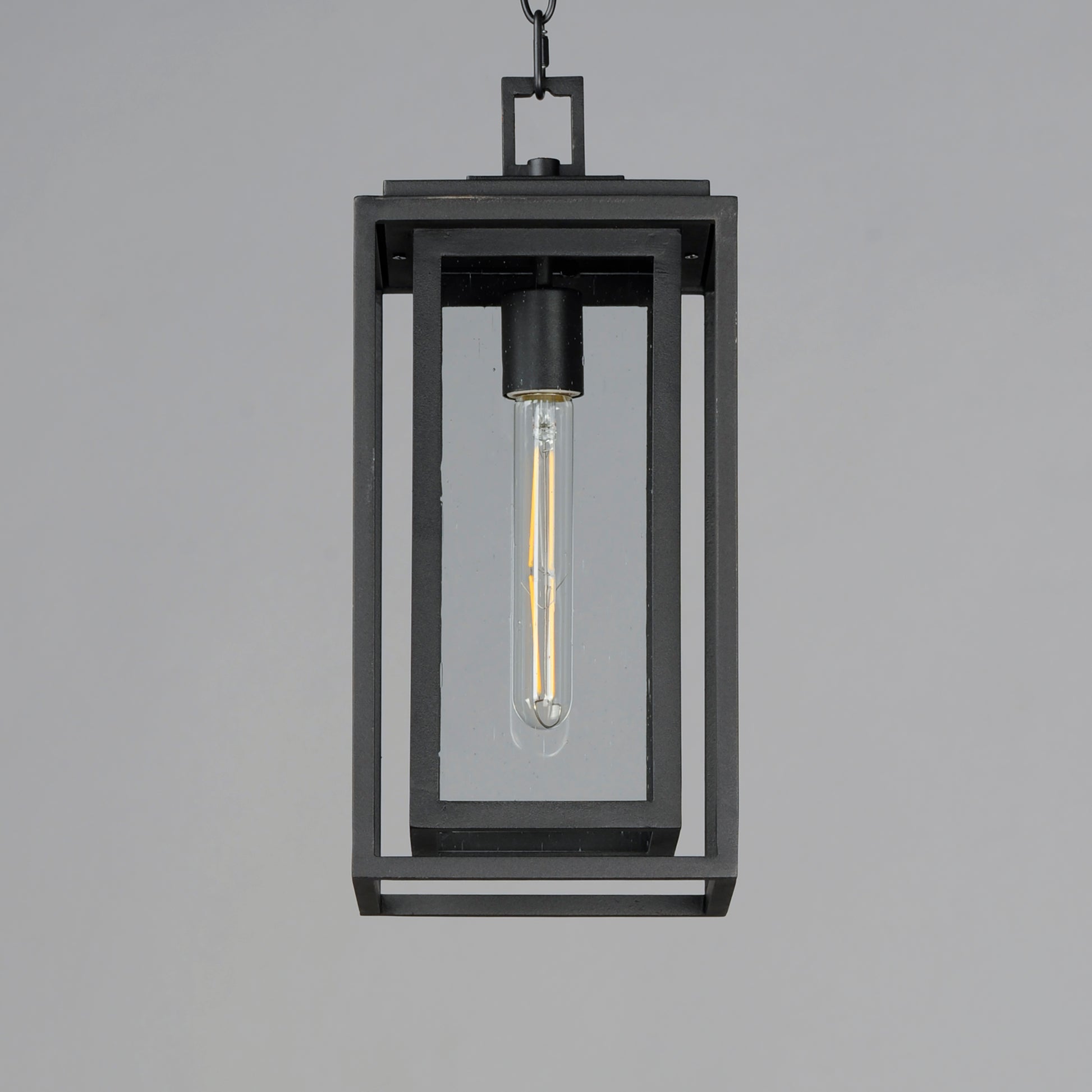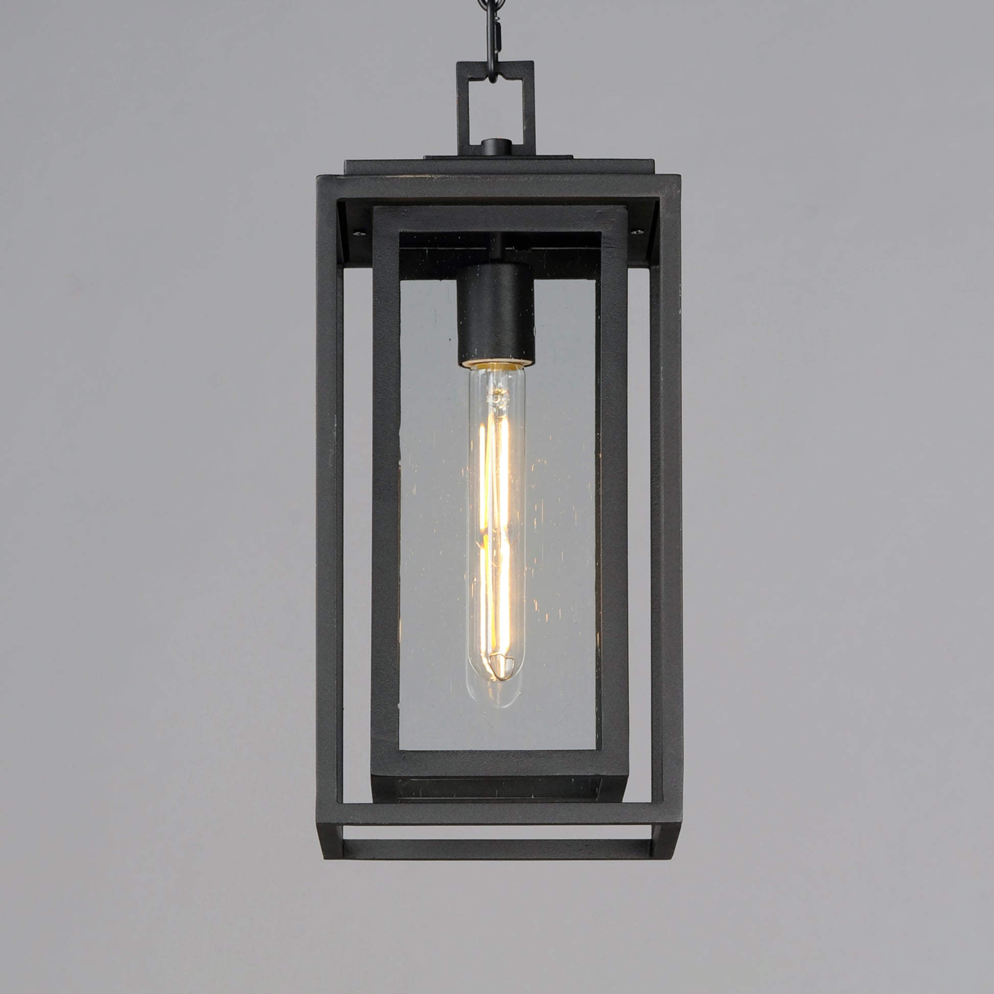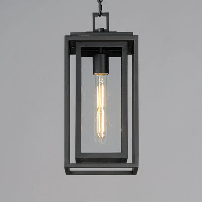 A dual framed structure creates dimension on these outdoor lighting fixtures that is both contemporary and transitional. The construction consists of two frames of square tubing and squared components. The inner frame's Clear Seedy glass reduces glare from the light and appears dirt-free for longer periods. This is a comprehensive collection to brighten all areas of your outdoor space, available in various sized sconces as well as hanging and post configurations.