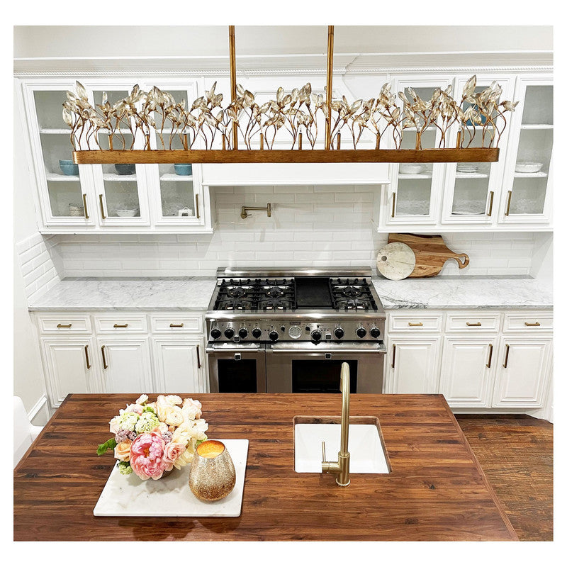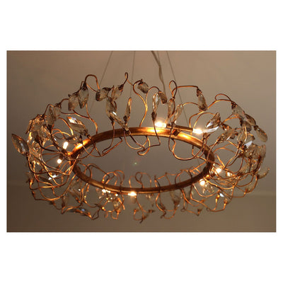 Hand formed wire stems finished in a rich Gold Leaf support delicate petals of Cognac crystal that create a beautiful garden of light. Petite G4 xenon lamps add brilliance and life to the sculpture.