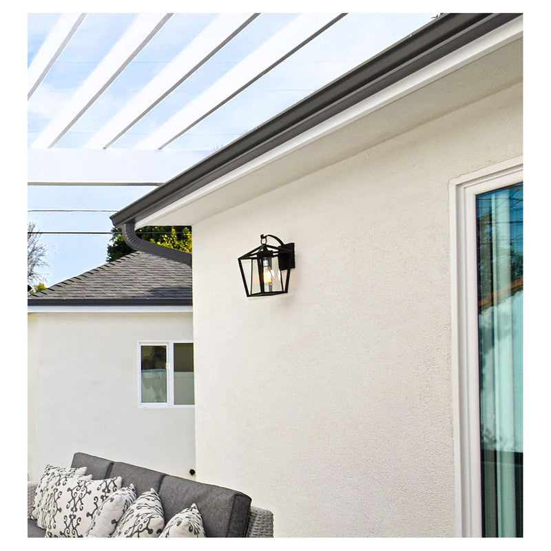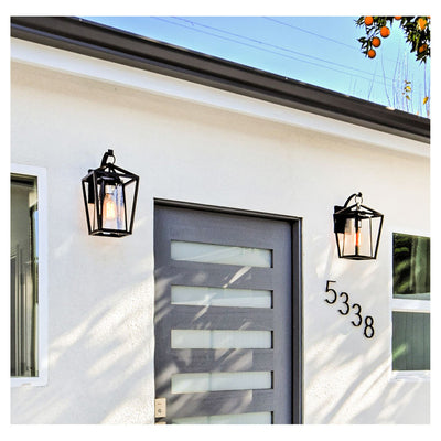 This frame inside a frame design is the perfect update to this classically inspired outdoor lantern. Durable stainless steel construction is finished in Black and supports an inner frame of Clear panels of glass for a crisp and clean appearance.
