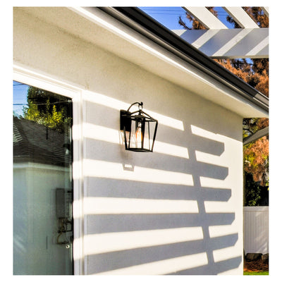 This frame inside a frame design is the perfect update to this classically inspired outdoor lantern. Durable stainless steel construction is finished in Black and supports an inner frame of Clear panels of glass for a crisp and clean appearance.