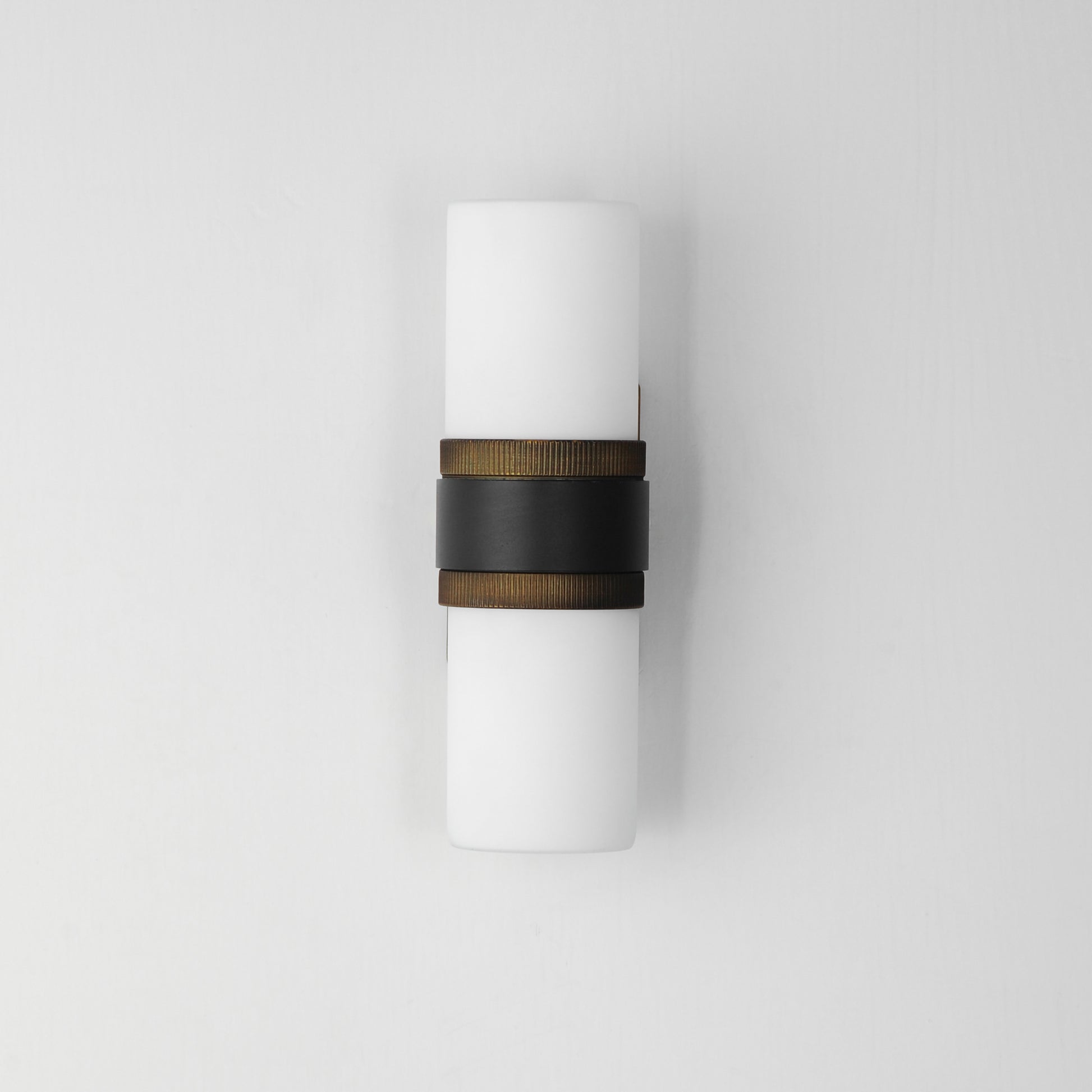 Featuring ridged collars of Antique Brass on a matte Black frame, the design of this series of pendants, semi-flush mounts and sconce lighting offers a transitional and stately companion collection to fixtures in a coordinating finish. The lighting is diffused through a rounded shaped shade of Satin White glass that evenly spreads a softer illumination. The series enhances spaces where lighting is needed adding a designer statement.
