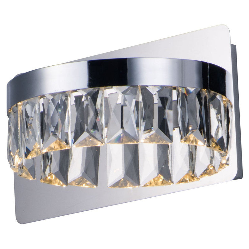 Rectangular Beveled Crystals are suspended from a channel of Polished Chrome. The crystal sparkles and shimmers when illuminated by the LED source encased in the channel. This contemporary will add elegance to a wide variety of room decors.