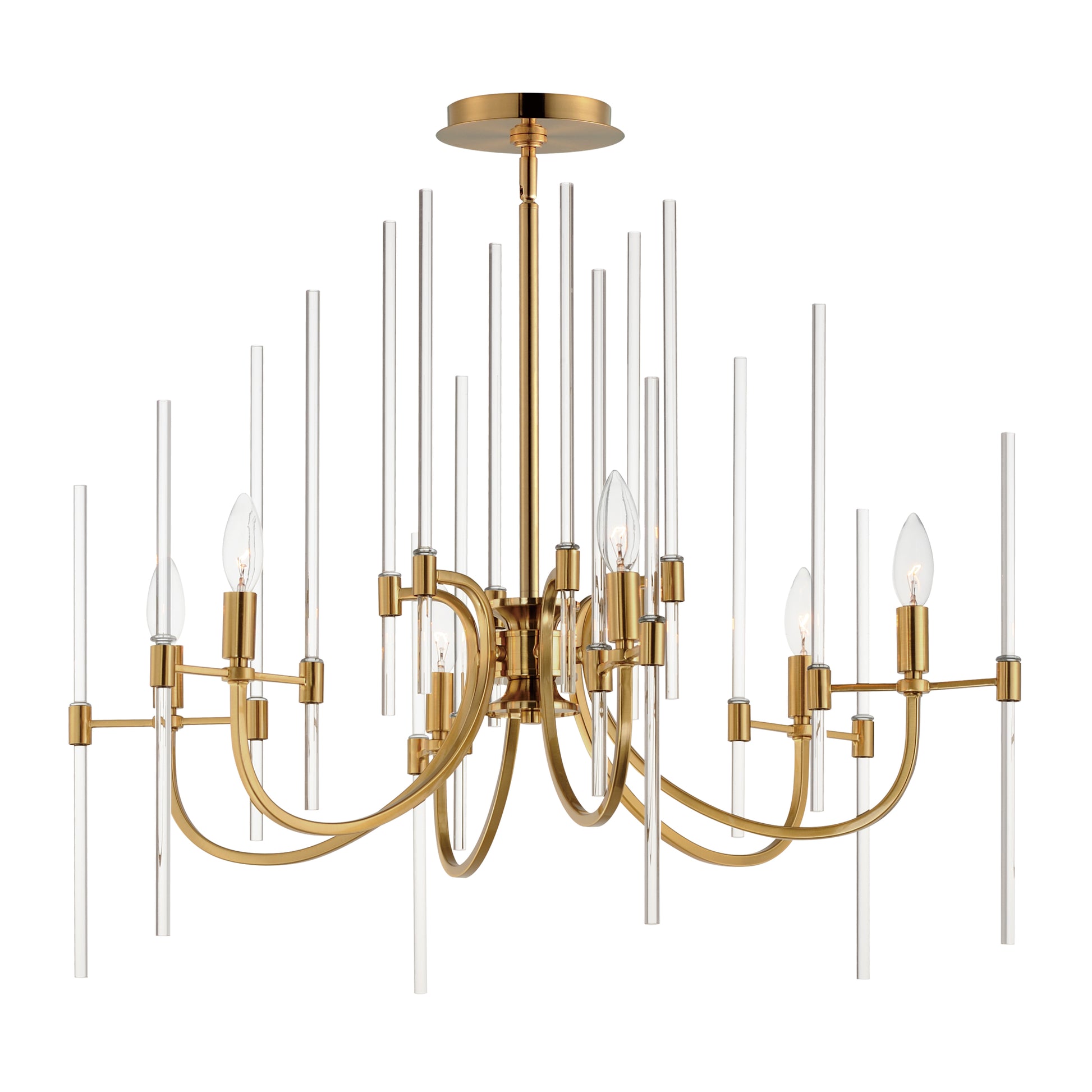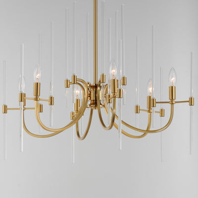 The composition of Clear glass rods are elegantly supported by thin radial arms of staggered lengths to create an iridescent motif that is truly Divine. Finished in Polished Nickel or Heritage Brass, the simplicity of this design delivers a crisp lighting fixture that works in a multitude of interior aesthetics from contemporary to traditional. Available in pendant, chandelier, and wall sconce configurations.