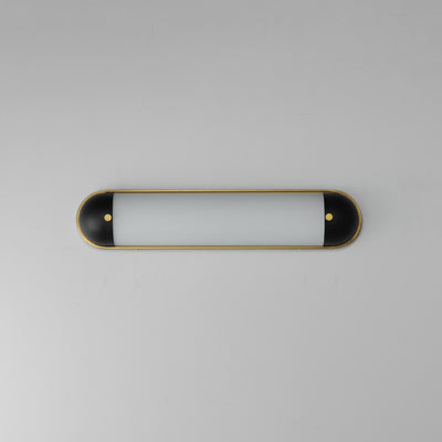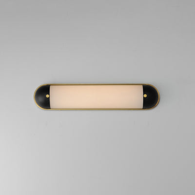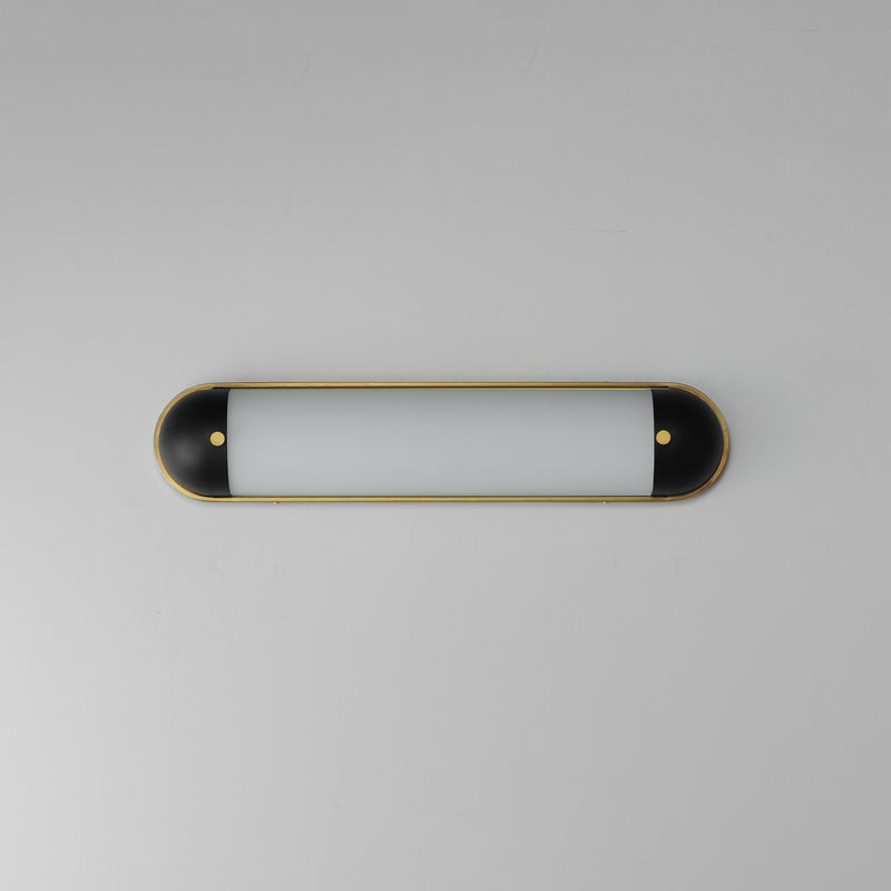 A convex curved glass is encapsulated at both ends to create an overall oval form. Available in a bold two-tone Black and Aged Brass finish or Polished Chrome, these wall sconces add sophistication to hallways and above bath vanities. The integrated LED technology within the glass features an easily accessible, yet discreet color selectable switch for 5 color temperatures from a warm 2700k to neutrals 3000-3500-4000K and a daylight white 5000k.