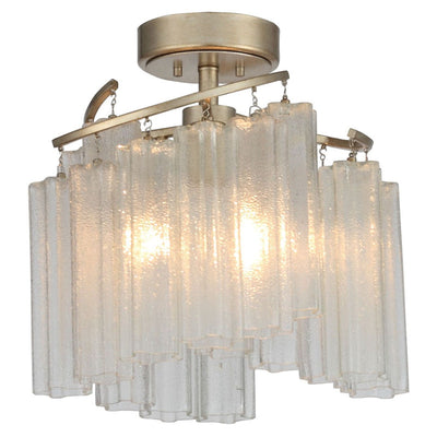 Cascading Waterfall glass shades are suspended from a frame finished in our popular Golden Silver. This elegant collection spans design genres from contemporary to traditional which gives it universal appeal.