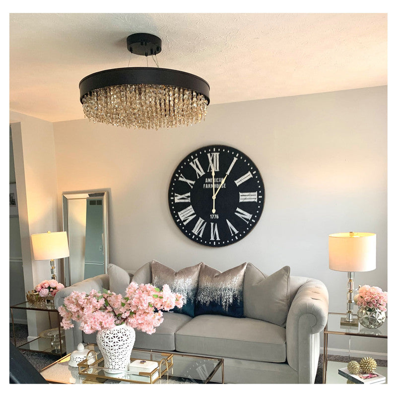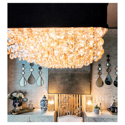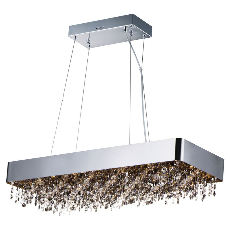 A sea of crystal strands suspend from within drums of steel which are finished in your choice of Bronze with Scotch crystal or Polished Chrome with Mirror Smoke crystal. Hidden inside the drum is a powerful dimmable LED source which has the crystals dancing in the night without any glare in your eyes.