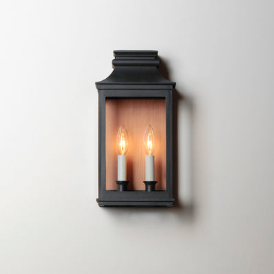 Inspired by classic colonial design, these climate-tough pocket sconces offer traditional charm and stylish finish combinations. Clear glass allows unobstructed light output and visibility into the sconces with candlesticks that stand out in their off-white finish. While the outer frame is made in a textured Black Oxide finish, the interior plate is finished either in a matching finish or contrasting Antique Copper or Verdigris finish. Available as a one, two, or three-light wall sconce, this offering of pocket sconces presents another style of Vivex outdoor products complementing more traditional exteriors.