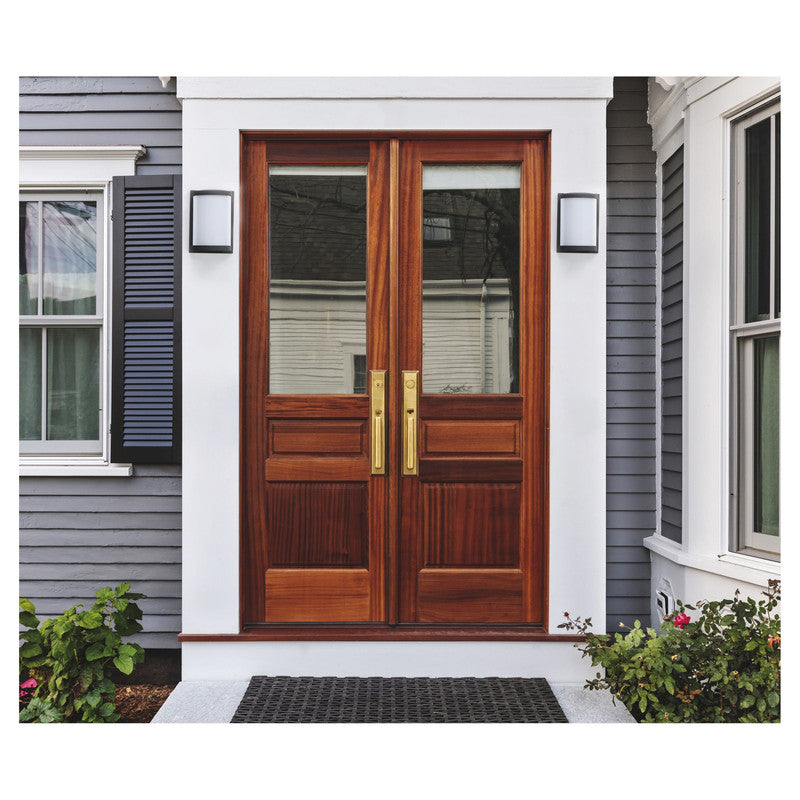 White UV-rated Polycarbonate cylinders are encased in a matte Black frame. These simple LED outdoor fixtures are a perfect combination of style at an affordable price.