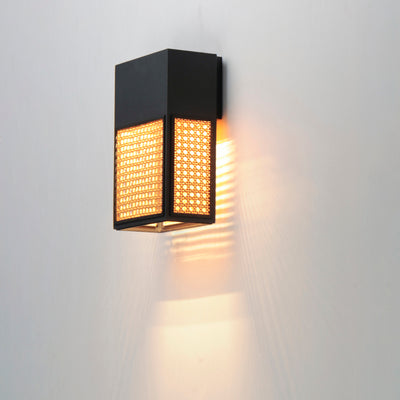 Modeled on open weave wicker stitchwork and constructed using synthetic rattan for longevity, this series of wall sconces are rated for both interiors and outdoors. Matte Black frames are paired with either Natural Rattan or a matching Black finish. This homespun concept pays homage to the outdoors with relevant styling and timeless appeal.